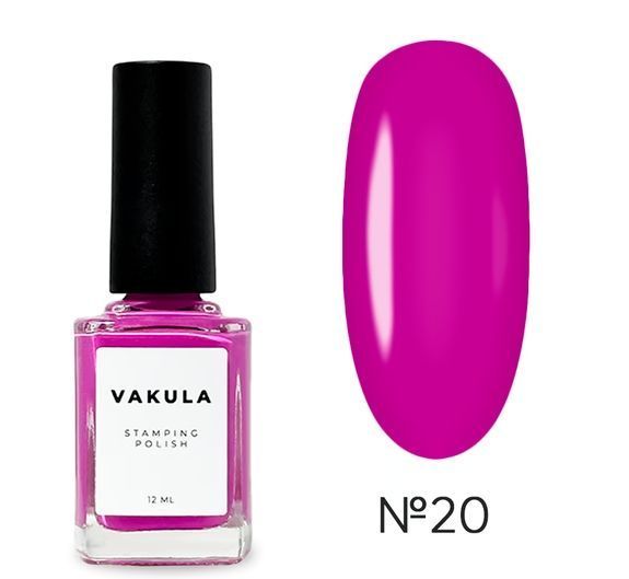 Лак для стемпінгу #20 від Vakula Nails у фіолетовому кольорі - це якісний продукт, розроблений професіоналом з великим досвідом у нігтьовій сфері. Майстер, що стоїть за цим брендом, має 14-річний досвід роботи, є 4-х разовою чемпіонкою України та вже навчила понад 7000 майстрів манікюру. Цей лак ідеально підходить для створення унікального та креативного дизайну нігтів, забезпечуючи чітке та насичене нанесення малюнків.